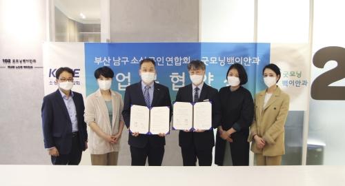 부산 남구소상공인연합회(회장 서홍원)와 굿모닝백이안과(대표 원장 백태민)는 최근 지역 소상공인들에게 의료서비스를 제공하기 위해 진료·업무 협약식을 했다.