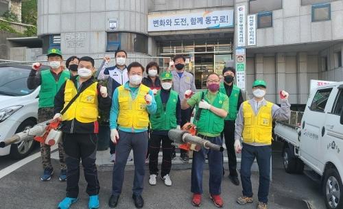 부산 동구 좌천동 새마을지도자협의회(회장 전종택)는 최근 쾌적한 마을 환경 조성과 코로나19 확산 방지를 위해 다중이용시설 등에서 방역 활동을 펼쳤다.