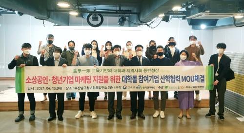 동명대 사회맞춤형 산학협력 선도대학(LINC+) 육성사업단(단장 신동석)은 최근 부산남구청년창조발전소에서 13개 청년기업과 ‘대학몰’ 참여 관련 협약을 체결했다. 이날 협약식에는 신동석 단장, 박수영 지역사회협업센터장, 김상길 부산남구청년창조발전소장, 설미희 (주)영비전 대표이사, 김기섭 (주)이체인저 대표이사 등 20여 명이 참석했다. 이재희 기자