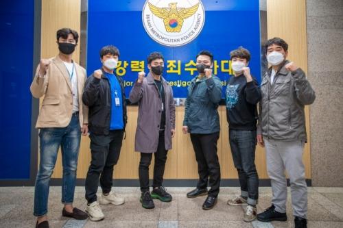 20대 청년을 극단적 선택으로 몬 보이스피싱범인 일명 ‘김민수 검사’와 조직원을 붙잡은 부산경찰청 강력범죄수사대 1계 강력 5팀. 왼쪽부터 김종성 경장, 강태현 경장, 이지완 경사, 박모선 경감, 이영재 경장, 박성민 경위. 부산경찰청 제공전국구 보이스피싱 범죄자인 일명 ‘김민수 검사’를 검거한 주역은 바로 부산경찰청 강력범죄수사대 1계 강력 5팀. 꿈 많은 20대 취업 준비생을 죽음으로 내몬 악질 보이스피싱범을 검거하기 위해 이들 형사 6명은 1년 넘게 주말도 반납했다. 그러한 끈질긴 노력은 마침내 이달 빛을 보게 됐다. 지난 14일 ‘김민수 검사’를 사칭한 40대 콜센터 직원을 비롯해 보이스피싱 조직원 6명을 사기와 범죄단체 가입 활동 등 혐의로 검거하는 데 성공한 것이다.