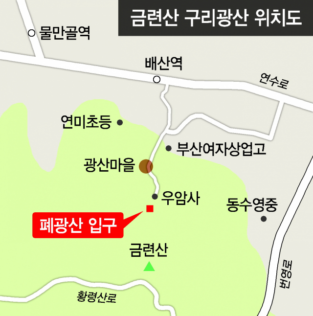 부산 수영구 망미동 금련산 A광산 입구.