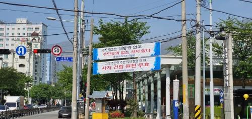 하북면 이장단협의회와 새마을지도자협의회, 청년연합회 등 16개 단체는 21일 문 대통령 사저가 건립되는 평산마을을 포함해 하북면 전역에 30여 장의 플래카드(사진)를 내걸었다고 밝혔다.