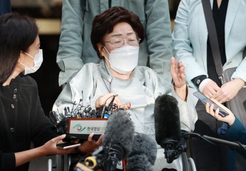21일 서울 서초구 중앙지방법원에서 일본군 위안부 피해자들이 일본 정부를 상대로 국내 법원에 제기한 두 번째 손해배상 청구 소송 선고 공판이 끝난 뒤 이용수 할머니가 판결에 대한 입장을 밝히고 있다. 연합뉴스일제강점기 위안부 피해자들이 일본 정부를 상대로 국내 법원에 제기한 두 번째 손해배상 청구 소송에서 ‘각하’ 판결을 받았다. 소송 당사자인 이용수 할머니는 “국제사법재판소에 끝까지 갈 것”이라며 이번 판결을 강하게 비판했다.