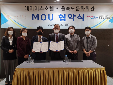 부산 사하구(구청장 김태석) 을숙도문화회관과 ㈜레이어스호텔(대표 박재복)은 객실 및 부대시설 이용에 관한 업무 협약을 4월 22일 체결했다.