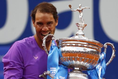 남자프로테니스 투어 바르셀로나 오픈에서 우승한 라파엘 나달이 트로피를 들고 있다. AP연합뉴스연합뉴스남자프로테니스(ATP) 랭킹 3위인 라파엘 나달이 무려 3시간 38분의 대접전 끝에 바르셀로나 오픈 남자 단식 정상에 올랐다.