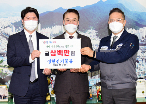 부산 사상구(구청장 김대근)는 지난 27일, ㈜정현전기물류(대표 오상훈)로부터 위기가정 지원을 위한 '나눔저금통' 사업에 후원금 300만 원을 전달받았다고 밝혔다.