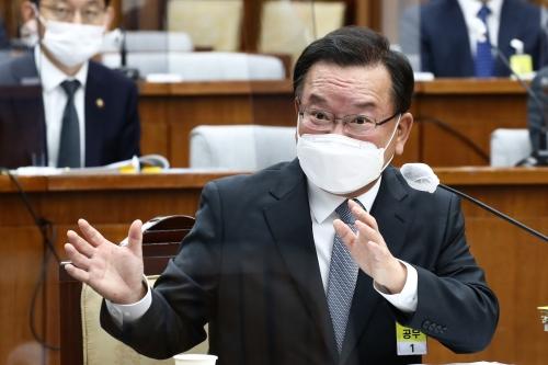 김부겸 국무총리 후보자가 6일 국회 제3회의장에서 열린 인사청문회에서 의원들의 질문에 답변하고 있다. 김종호 기자 kimjh@김부겸 국무총리 후보자는 국회 인사청문회 첫날인 6일 야권의 현 정부에 대한 질책에 공감하고 오히려 여권 주류 인식에는 ‘소신’ 발언을 했다. 김 후보자가 총리 지명 뒤 일성으로 ‘민생 현장 목소리를 문재인 대통령에게 가감 없이 전달하겠다’고 한 만큼 야당의 목소리에 귀를 기울이겠다는 의지를 부각한 것으로 풀이된다. 대표적으로 김 후보자는 더불어민주당 박재호 의원이 백신 문제에 대해 “야당이 유언비어성 문제를 조장하는 것도 있겠죠”라고 공감을 구하자 “야당 문제는 아닌 것 같다”고 동의하지 않았다. 반면 국민의힘 조수진 의원이 “민주당이 의석수를 앞세워 임대차 3법 등을 기립 표결한다”고 다수당의 횡포를 지적하자 여기에는 “국민 삶에 직접 영향을 미치는 법안은 숙성해서, 여야가 대화했다면 국민을 납득하는 데 도움을 줬을 것”이라고 공감을 표했다.