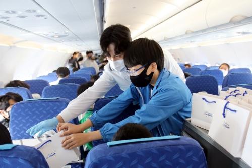 이날 비행에 참여한 남성초등 6학년 정재욱(12) 군은 “파일럿이 꿈인데 기장이나 승무원이 하는 일을 실감나게 배울 수 있었다”며 웃었다.