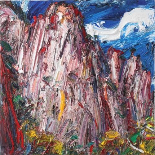 신홍직 ‘설악산’. 갤러리조이 제공신홍직 초대전 ‘울림이 있는 공간’=6월 8일까지 갤러리조이. 붓을 사용하지 않고 물감을 튜브에서 나오는 강도에 따라 짜여진 상태로 그려낸 그림. 051-746-5030.