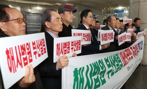 해사법원 부산설립 범시민추진협의회 회원들이 2018년 해사법원 부산설립 대선 공약의 조속한 이행을 촉구하고 있다. 부산일보DB해사법원 부산 설립을 위해 부산 지역 시민단체와 부산지방변호사회가 손을 잡고 본격적인 유치 운동에 나선다. 해사법원 유치를 통해 부산이 해운·금융·법률을 연계한 아시아의 토털 해운서비스산업 도시로 자리매김해야 한다는 목소리가 커지고 있다.
