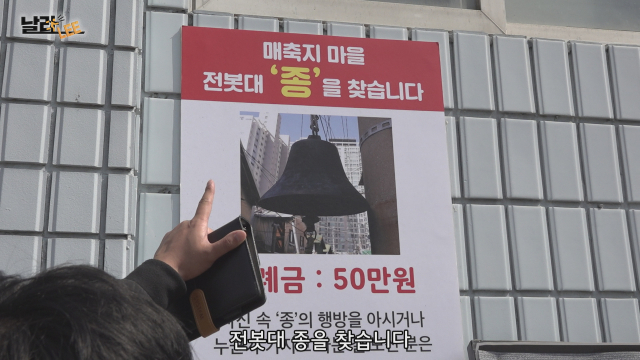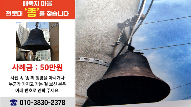 "종에 매축지마을 이니셜이라든지 어떤 표식이 새겨져 있지 않아 추후 증명하기가 쉽지 않을 겁니다. 10만~20만 원 정도의 고철값을 받고 팔았을 확률이 큽니다. 최근 뉴스에 계속 나오니 겁이 나서 계속 들고 있을 수도 있고요."