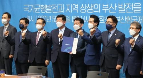 이 의원은 “항만-공항-철도 트라이포트 구축을 통해 부울경의 신경제엔진을 마련해야 하는데, 이를 위해서는 2029년까지 가덕신공항이 완공돼야 한다”고 말했다. 이어 “2030 부산엑스포를 개최하면 4조 9000억 원의 직접 투자를 포함해 SOC 등에 많은 투자가 일어나고, 5000만 명의 방문객이 부산을 찾을 것으로 예상된다”며 “현재로서는 엑스포 유치에 나설 민간 위원장이 누가 되느냐가 가장 중요한 문제인데, 민주당은 정부와 협의해서 유치 위원장을 조속히 확정하도록 노력하겠다”고 말했다.