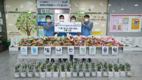 김해시자원봉사센터(센터장 박종주)와 한국가스기술공사 부산경남지사(지사장 이상훈)는 지난 17일 성년의 날을 맞아 '스물, 빛나는 청춘 응원' 선물을 전달했다.
