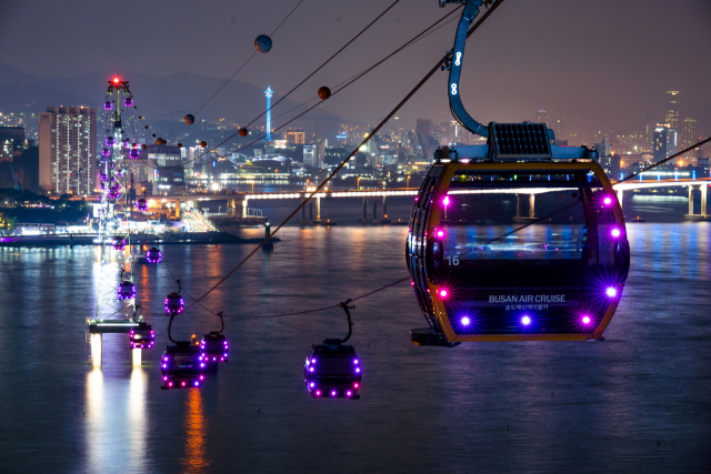 부산 야간 관광 활성화를 위한 ‘별바다 부산’ 브랜드 홍보활동이 본격화된다. 산복도로에서 바라본 야경(위로부터)과 송도 케이블카 야경, 마린시티 야경. 부산일보DB
