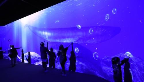 부산 영도구 국립해양박물관에서 열리고 있는 기획 전시 ‘심연의 상상’ 전시장에서 관람객들이 가상현실로 깊은 바닷속을 체험하고 있다. 10월 10일까지 열리는 이번 전시회는 인류 잠수의 기원과 해저 탐험 역사, 미래 발전상 등을 소개한다. 강선배 기자 ksun@