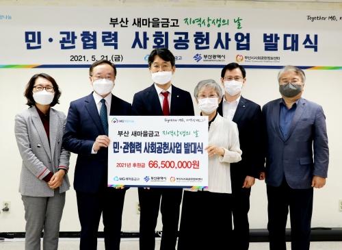부산 지역 새마을금고는 지난 21일 부산시 사회공헌정보센터에서 새마을금고 지역상생의 날 민·관 협력 사회공헌사업 발대식을 갖고 지역 복지단체 등에 6650만 원을 기부했다.