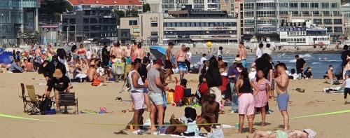 하지만 현장에서는 모호한 규정 때문에 단속이 어렵고, 단속을 하더라도 신원 확인이 어려워 한계가 있다는 지적도 나온다. 실제로 지난 29일 2000여 명에 대해 과태료 부과는 전무했다. 해운대구청 관광시설관리사업소 관계자는 “현재는 실외에서 2m 거리를 유지하지 않은 마스크 미착용자에 대해서만 과태료를 부과한다”며 “조항 자체가 모호한 측면이 있고 미군의 경우 적발하더라도 신분 확인을 잘 해 주지 않는 경우가 많아 미군 헌병대에 의존하는 상황”이라고 말했다.