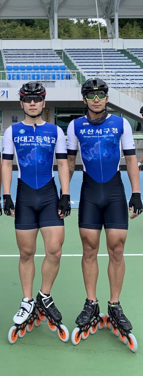 전국 남녀종별 롤러스포츠 스피드 대회에서 우승한 부산 서구청 김민호(오른쪽), 다대고 김태우 선수. 부산 롤러스포츠 연맹 제공부산 서구청과 고교 소속 롤러스포츠 선수들이 전국대회에서 승전보를 전해왔다.