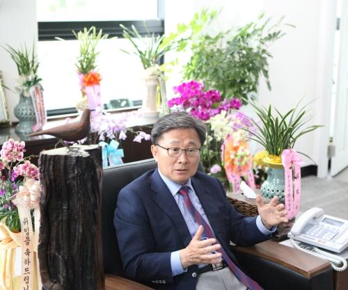 우선 궁금했다. 지역거점국립대 총장까지 지냈던 인사가 왜 사립대 총장을 선택한 것일까. 이 부분에 대해 전 총장의 대답은 명쾌했다. 그는 “사람은 스스로 하고 싶은 것을 해야 하는데, 원래 부산대에 있을 때부터 ‘두잉(Do-ing)대학’ 가치를 실현하고 싶었다”면서 “다른 대학에서 총장 제의도 받았지만, 동명대는 두잉대학을 실현할 적당한 규모인 데다 산학협력도 탄탄한 강소대학이기에 동명대를 선택했다”고 말했다.