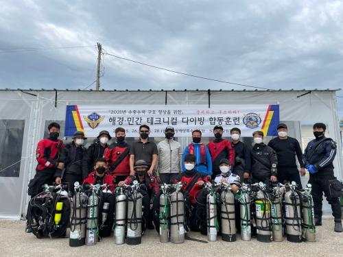 중앙해양특수구조단(단장 권오성)은 최근 강원도 강릉 사근진 해중공원에서 민간잠수사 간 유기적인 협력관계 구축을 위한 ‘침몰선박 구조 역량 강화’ 합동훈련을 했다.