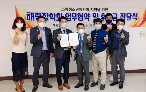 해랑장학회(회장 이금상)는 최근 (사)한국백혈병소아암협회 부산지회(지회장 박동호)와 업무 협약식을 가지고 치료비 120만 원을 기탁했다.