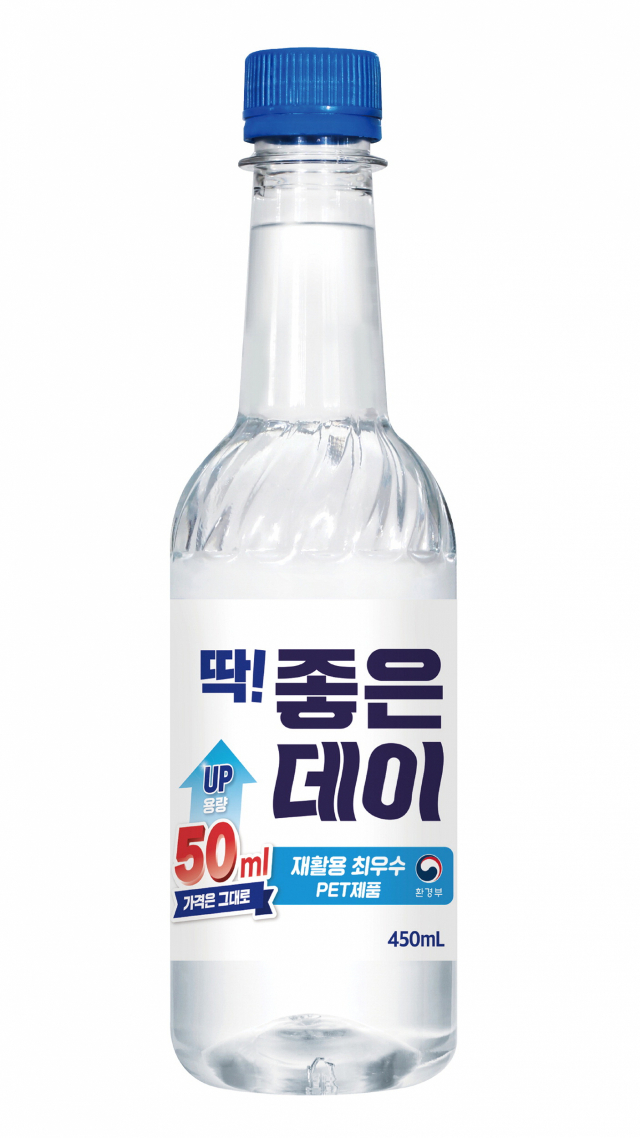 무엇보다 좋은데이 450mL 페트는 용기와 포장재 분리 배출이 간편한 친환경 포장재를 적용했다는 점이 눈길을 끈다. 환경부도 이런 친환경성을 높이 사 재활용 최우수 등급 제품으로 인정했다.