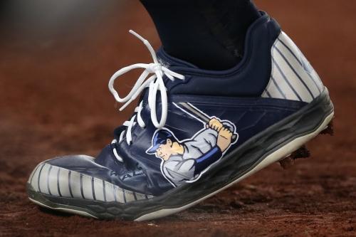 미국프로야구 뉴욕 양키스의 외야수 애런 저지가 2일(현지 시간) 올해 처음 제정된 ‘루 게릭 데이’를 맞아 양키스의 홈런왕 루 게릭의 모습을 담은 신발을 신고 출전해 고인을 추모했다. 루 게릭은 1941년 6월 2일 근육이 수축하는 희귀병으로 세상을 떠났고 그의 등번호 4번은 양키스 최초의 영구 결번으로 결정됐다. 그의 사망을 계기로 이 희귀병은 ‘루 게릭병’으로 불린다. USA투데이연합뉴스