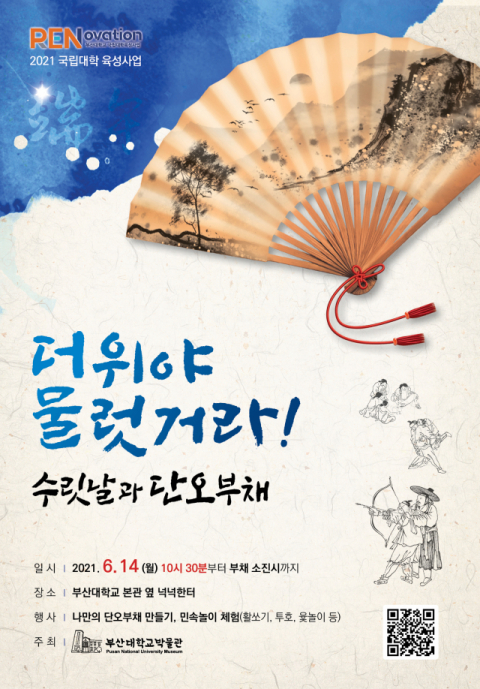 김두철 부산대 박물관장은 “길고 고통스러운 코로나19로 지치고 힘든 몸과 마음을 달래고자 철저한 방역조치 하에 행사를 마련했으니 시원한 부채 만들고 민속놀이 체험도 하면서 건강한 여름 나시길 바란다”고 말했다.