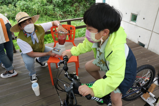 이어 플로깅(조깅을 하면서 쓰레기를 줍는 운동)과 적정기술(지속적인 생산과 소비가 가능하도록 만들어진 기술)을 알아보는 ‘양동이 한잔’ 프로그램을 진행했다. 참가자들은 선촌마을 주변을 돌며 주운 쓰레기를 양동이에 담아 과일로 교환한 뒤, 자전거 발전기로 믹서기를 돌려 주스를 만들어 먹으며 지속가능한 삶을 체험했다.