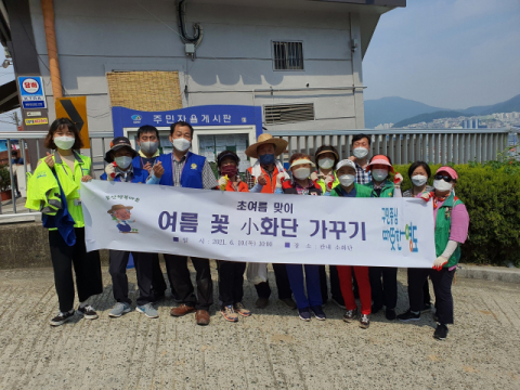 이날 행사에는 동 직원 5명을 비롯한 통장 및 단체원 20여명이 참석하여 관내 소화단·소공원을 정비하고 백일홍, 메리골드 등 여름 초화를 식재하였다.