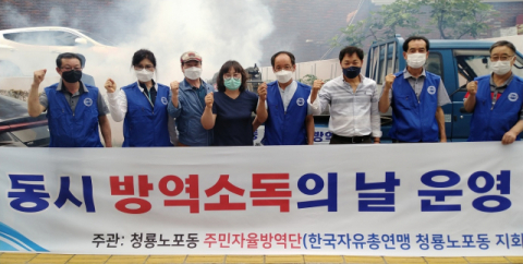 부산 금정구(구청장 정미영) 청룡노포동은 지난 10일 다가오는 장마철을 대비하고 코로나19 확산을 방지하기 위해 청룡노포동 주민자율방역단(단장 전찬국) 발대식을 열었다.