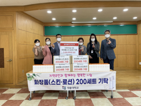 부산 금정구(구청장 정미영) 부곡2동은 지난 11일 대동대학교(총장 배순철)가 지역주민을 위해 디앤비 코리아 화장품 200세트(560만 원 상당)를 기탁했다고 밝혔다.