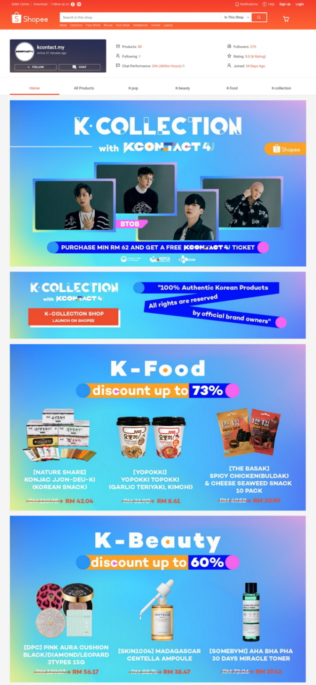 쇼피는 플랫폼 메인화면(사진)에 캠페인 배너 노출, 아이돌 포토카드 증정, 현지 유명 인플루언서와 함께하는 '쇼피 라이브(Shopee Live)' 등을 통해 행사 기간 동안 활발한 홍보 활동을 펼칠 계획이다. 쇼피의 K-컬렉션 공식 홍보대사로 선정된 아이돌그룹 비투비는 쇼피 라이브를 통해 직접 제품들을 소개하고, 단독 온라인 팬미팅을 진행해 현지 K팝 팬들을 고객으로 적극 유입할 예정이다.