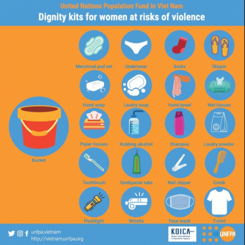 존엄키트는 여성의 생식 건강과 기본 권리를 보호하고, 성별에 따른 폭력 위험을 완화하며, 위기상황에서의 존엄성을 보호하는 인도적 지원 품목을 의미한다. 동 키트에는 생리대, 속옷, 마스크, 손전등 총 20여종의 물품이 제공된다. 특히 2020년 베트남 중부지역 홍수피해 당시, 인도적 지원의 일환으로 베트남 취약계층 여성들에게 제공된 바 있다.