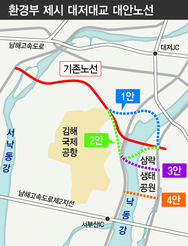 ‘대저대교 4가지 대안노선’ 부산시 난색, 환경단체는 반발