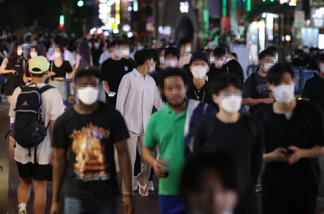 국내 신종 코로나바이러스 감염증(코로나19) 확산세가 다시 거세지고 있는 2일 밤 10시가 지나자 서울 마포구 홍대 인근 거리로 나온 시민 및 외국인 등이 거리를 지나고 있다. 연합뉴스