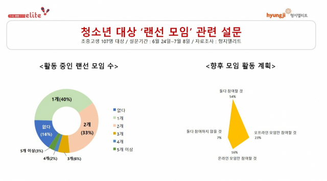 형지엘리트 마케팅 담당자는 "이번 설문조사를 통해 온라인에서 친분을 쌓고 관심사를 공유하고자 하는 청소년들이 늘어나고 있음을 확인할 수 있었다"면서 "코로나19 팬데믹이 장기화되고 있는 만큼 다양한 주제의 랜선 모임이 더욱 활성화될 것으로 보인다"고 전했다.