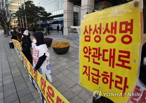삼성생명 본사 안팎에서 장기간 이어진 암환자 시위 중단은 회사 측 '회유'의 결과일 뿐, 분쟁 해소와는 거리가 멀다며 암환자들이 보험금 지급을 촉구했다.