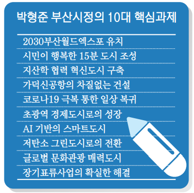 16일 취임 100일을 맞은 박형준 부산시장이 자신의 공약을 6대 분야, 35대 추진과제, 146개 세부사업으로 정리해 발표했다. 부산이 직면한 여러 현안 가운데 역량을 집중해 성과를 창출할 10대 핵심과제도 따로 정했다.