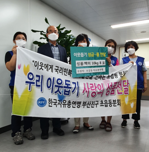한국자유총연맹초읍동분회(회장 이정현)는 22일 관내 저소득 독거노인 가정에 전달해 달라며 부산진구 초읍동주민센터(동장 이승주)에 백미 80kg(29만 원 상당)를 전달했다.