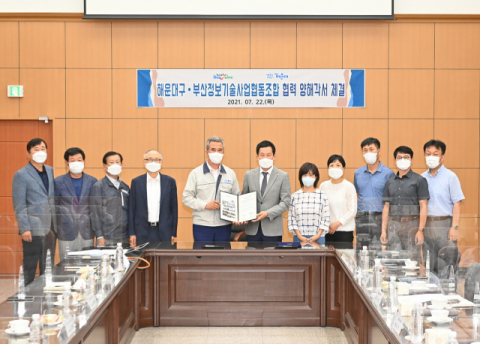 해운대구(구청장 홍순헌)는 22일 부산정보기술사업협동조합(이사장 고진호 ㈜퓨트로닉 대표)과 상호 발전을 위한 업무협약을 체결했다.
