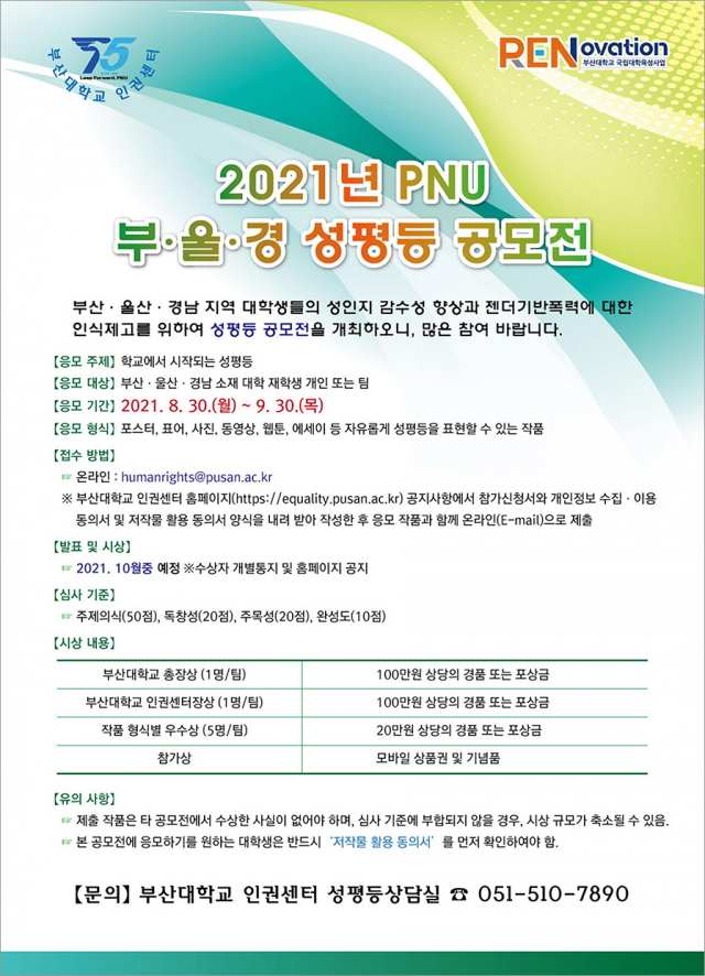 부산대 인권센터, 「2021년 PNU 부·울·경 성평등 공모전」 개최
