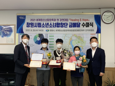 창원시(시장 허성무)는 25일 제2부시장실에서 세계청소년합창축제 앤 경연대회에서 좋은 성적을 거둔 창원시립소년소녀합창단에 상장과 메달을 수여하는 금메달 수여식을 개최했다.