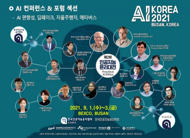 부산광역시와 부산정보산업진흥원, 벡스코가 주관하는 ‘AI KOREA 2021’행사가 9월1일부터 3일까지 부산 벡스코에서 열린다. 특히 이번 행사는 동서대 SW중심대학사업단, 동국대 동서사상연구소, 중앙대 인문콘텐츠연구소가 공동 주최하고 한국인공지능윤리협회와 한국인공지능윤리학회가 공동 주관하는 제2회 인공지능 윤리대전 컨퍼런스가 함께 열러 주목된다.