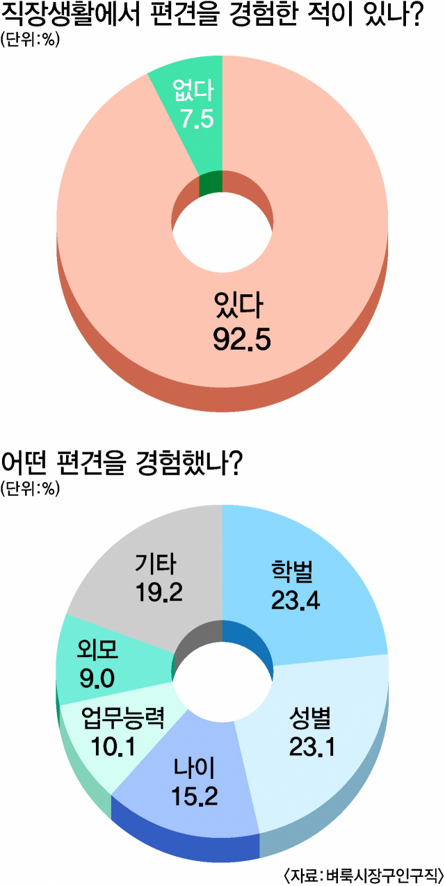 서울에서 인턴 생활을 했던 한 모(27) 씨 역시 직장에서 지방대 혐오를 경험했다. ‘어느 대학 나왔냐’는 질문에 한 씨가 답하면 ‘그런 대학도 있냐’는 농담 아닌 농담이 돌아왔다. ‘지방대 쿼터’로 뽑힌 구색맞추기용 인턴이라는 수근거림도 참아내야만 했다. 직장인들이 업무능력, 성별, 나이보다도 학벌 차별을 자주 겪었다는 설문조사 결과도 있다.