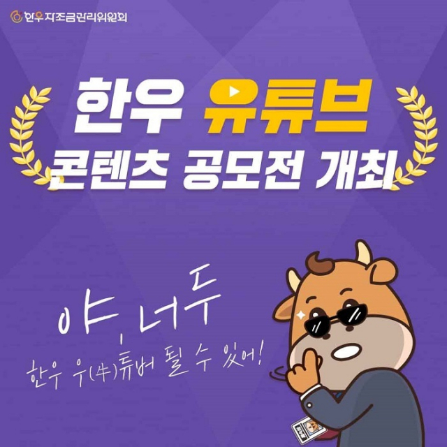 한우자조금관리위원회가 한우의 우수성을 알리기 위한 유튜브 영상 콘텐츠 공모전 ‘한우 우(牛)튜버를 찾아라를 개최한다고 13일 밝혔다.