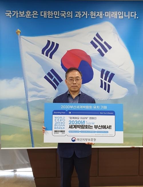 부산지방보훈청 임성현 청장은 최근 전 보훈가족의 염원을 담아 2030 부산세계박람회가 열리길 기원한다며 ‘함께해요 이삼부 캠페인’에 동참했다.