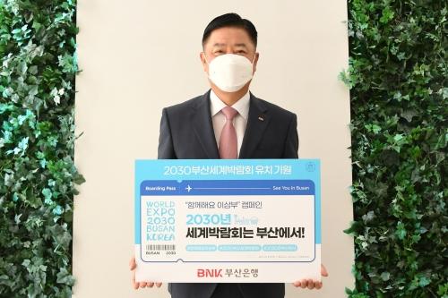 BNK부산은행 안감찬 은행장은 최근 “부산과 함께 성장해온 지역은행으로서 2030 부산세계박람회 유치를 위해 응원하겠다”며 ‘이삼부 캠페인’에 동참했다.