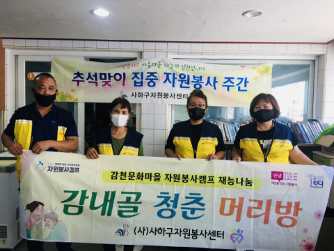 (사)사하구자원봉사센터(센터장 황명옥) 감천문화마을 자원봉사캠프(캠프장 김인상)는 지난 9월 11일 자원봉사캠프에서 이·미용 봉사 프로그램을 진행했다.