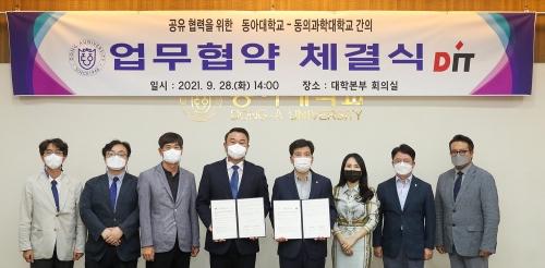 동아대학교(총장 이해우·왼쪽 다섯 번째)와 동의과학대학교(총장 김영도·왼쪽 네 번째)는 지난 28일 동아대 대학본부 대회의실에서 4차 산업혁명 시대 미래 인재 양성과 혁신 가치 창출을 위해 협약을 체결했다.